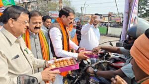 यह भव्य आयोजन भारतीय जनता पार्टी जिला कोरबा के तत्वाधान में उद्योग मंत्री श्री लखनलाल देवांगन, भाजपा जिलाध्यक्ष श्री गोपाल मोदी, कटघोरा विधायक श्री प्रेमचंद पटेल एवं नगर निगम कोरबा की महापौर श्रीमती संजू देवी राजपूत के नेतृत्व में टीपी नगर चौक में संपन्न हुआ। कार्यक्रम में बड़ी संख्या में भाजपा पदाधिकारी, जनप्रतिनिधि, कार्यकर्ता एवं आम नागरिक उपस्थित रहे, जिससे पूरा क्षेत्र भाजपा के उत्सव रंग में रंग गया।