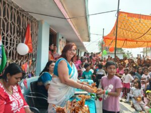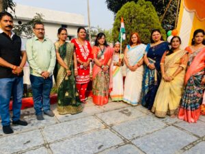 कार्यक्रम का शुभारंभ ध्वजारोहण के साथ हुआ, जिसे नीलू राय द्वारा संपन्न किया गया। इस अवसर पर श्वेता दुबे, गीता, नेहा सिन्हा, सुमन श्रीवास्तव एवं पवन सिन्हा विशेष रूप से उपस्थित रहे। ध्वजारोहण के पश्चात सामूहिक रूप से राष्ट्रगान का गायन किया गया, जिससे समूचे वातावरण में राष्ट्रप्रेम की भावना और अधिक प्रबल हो उठी।