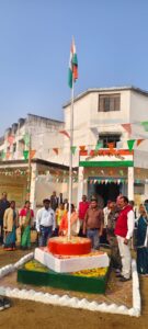 рдкреВрдЬрди рдЙрдкрд░рд╛рдВрдд рд╢реНрд░реА рдЭрд╛рд░рд┐рдпрд╛ рдЬреА рдиреЗ рд╡рд┐рдзрд┐рд╡рдд рд░рд╛рд╖реНрдЯреНрд░реАрдп рдзреНрд╡рдЬ рддрд┐рд░рдВрдЧрд╛ рдлрд╣рд░рд╛рдХрд░ рдЙрд╕реЗ рд╕рд▓рд╛рдореА рджреАред рд░рд╛рд╖реНрдЯреНрд░рдЧрд╛рди рдХреЗ рд╕рд╛рдореВрд╣рд┐рдХ рдЧрд╛рдпрди рдХреЗ рд╕рд╛рде рд╡рд┐рджреНрдпрд╛рд▓рдп рдкрд░рд┐рд╕рд░ рджреЗрд╢рднрдХреНрддрд┐ рдХреЗ рд░рдВрдЧ рдореЗрдВ рд░рдВрдЧ рдЧрдпрд╛ рдФрд░ тАЬрднрд╛рд░рдд рдорд╛рддрд╛ рдХреА рдЬрдптАЭ рдХреЗ рдЧрдЧрдирднреЗрджреА рдирд╛рд░реЛрдВ рд╕реЗ рд╡рд╛рддрд╛рд╡рд░рдг рдЧреВрдВрдЬ рдЙрдард╛ред