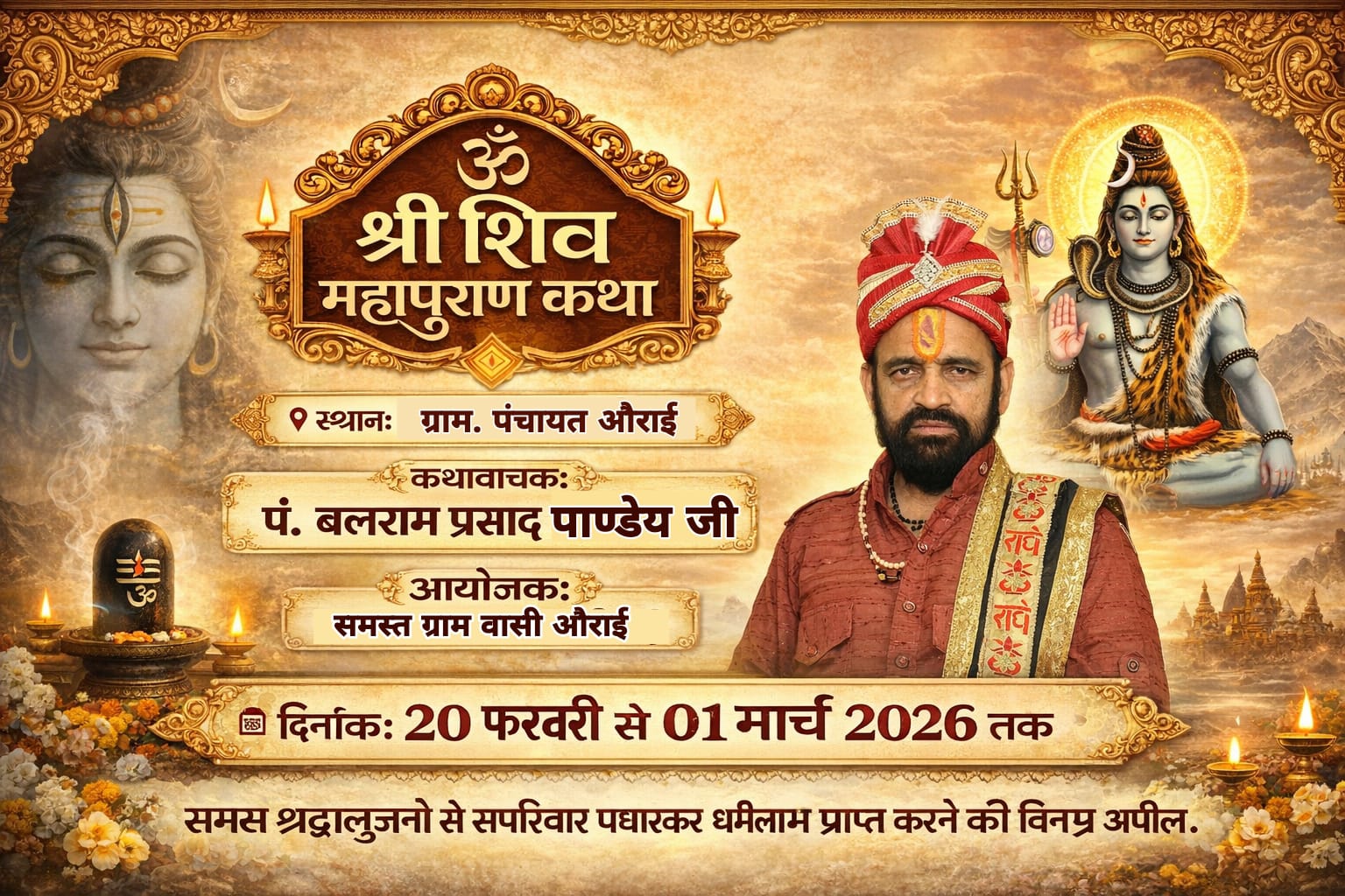 ЁЯФ▒ рдФрд░рд╛рдИ рдмрдиреЗрдЧрд╛ рд╢рд┐рд╡рднрдХреНрддрд┐ рдХрд╛ рдзрд╛рдо тАФ 20 рдлрд░рд╡рд░реА рд╕реЗ 10 рджрд┐рд╡рд╕реАрдп рд╕рдВрдЧреАрддрдордп рд╢рд┐рд╡ рдорд╣рд╛рдкреБрд░рд╛рдг рдХрдерд╛ рдореЗрдВ рдЧреВрдВрдЬреЗрдЧрд╛ тАШрд╣рд░-рд╣рд░ рдорд╣рд╛рджреЗрд╡тАЩ