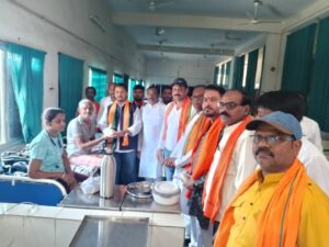 भाजपा पिछड़ा वर्ग मोर्चा के प्रदेश अध्यक्ष अशोक साहू के आह्वान पर भाजपा पिछड़ा वर्ग मोर्चा (रायपुर शहर) द्वारा प्रदेश के आयुर्वेदिक अस्पताल में मरीजों को फल वितरण कर मुख्यमंत्री का जन्मोत्सव मनाया गया। इस अवसर पर मोर्चा के प्रदेश उपाध्यक्ष देवदत्त साहू, मोर्चा के जिला अध्यक्ष अखिलेश कश्यप, रायपुर संभाग के प्रभारी राजेंद्र नायक, प्रदेश सह कार्यालय मंत्री तामेश्वर साहू, प्रदेश कार्यसमिति सदस्य प्रदीप साहू, अरविंद यादव सहित जिले के पदाधिकारी गण एवं कार्यकर्तागण बड़ी संख्या में उपस्थित रहे।
