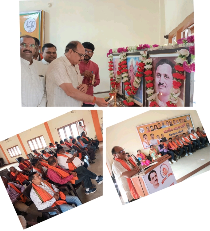 рдХрд╛рд░реНрдпрдХреНрд░рдо рдХрд╛ рд╢реБрднрд╛рд░рдВрдн рд░рд╛рд╖реНрдЯреНрд░рдирд╛рдпрдХ рдбреЙ. рд╢реНрдпрд╛рдорд╛ рдкреНрд░рд╕рд╛рдж рдореБрдЦрд░реНрдЬреА, рднрд╛рд░рдд рдорд╛рддрд╛ рдПрд╡рдВ рджреАрдирджрдпрд╛рд▓ рдЙрдкрд╛рдзреНрдпрд╛рдп рдХреЗ рддреИрд▓рдЪрд┐рддреНрд░ рдкрд░ рджреАрдк рдкреНрд░рдЬреНрд╡рд▓рди рдПрд╡рдВ рдорд╛рд▓реНрдпрд╛рд░реНрдкрдг рдХрд░ рдХрд┐рдпрд╛ рдЧрдпрд╛ред рдЗрд╕рдХреЗ рдкрд╢реНрдЪрд╛рдд рдЖрдпреЛрдЬрд┐рдд рдкрд░рд┐рдЪрдп рд╕рддреНрд░ рдореЗрдВ рд╕рднреА рдкрджрд╛рдзрд┐рдХрд╛рд░рд┐рдпреЛрдВ рдиреЗ рд╕реНрд╡рдпрдВ рдХрд╛ рдкрд░рд┐рдЪрдп рджреЗрддреЗ рд╣реБрдП рд╕рдВрдЧрдарди рдХреЛ рдмреВрде рд╕реНрддрд░ рддрдХ рд╕рд╢рдХреНрдд рдмрдирд╛рдиреЗ рдХрд╛ рджреГрдврд╝ рд╕рдВрдХрд▓реНрдк рд╡реНрдпрдХреНрдд рдХрд┐рдпрд╛ред