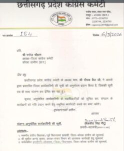 बुधवार सिंह कंवर लंबे समय से ब्लॉक कांग्रेस संगठन में एक कर्मठ और निष्ठावान कार्यकर्ता के रूप में सक्रिय रहे हैं। संगठन के प्रति उनकी मेहनत, समर्पण और सक्रियता को देखते हुए पार्टी नेतृत्व ने उन्हें जिला स्तर पर महत्वपूर्ण जिम्मेदारी सौंपी है।