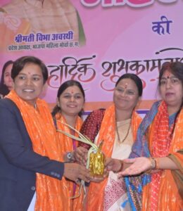 मुख्य अतिथि विभा अवस्थी ने अपने संबोधन में कहा कि भारतीय जनता पार्टी महिलाओं को केवल सम्मान ही नहीं देती, बल्कि उन्हें नेतृत्व और निर्णय प्रक्रिया में भी समान अवसर प्रदान करती है। उन्होंने कहा कि प्रधानमंत्री नरेंद्र मोदी के नेतृत्व में महिलाओं के सशक्तिकरण के लिए अनेक योजनाएं संचालित की जा रही हैं, जिनसे देश की मातृशक्ति आत्मनिर्भर बन रही है और समाज में नई पहचान बना रही है।