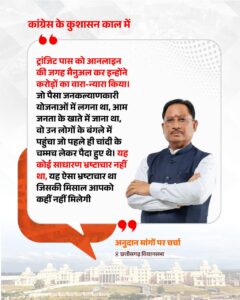 मुख्यमंत्री ने कहा कि कांग्रेस शासन में ईमानदार अधिकारियों को प्रोत्साहन नहीं, बल्कि प्रताड़ना मिली। उन्होंने आरोप लगाया कि मंत्रालय में अनुशासन का अभाव था और कोविड के बाद तो नेतृत्व का वहां जाना भी लगभग बंद हो गया था।