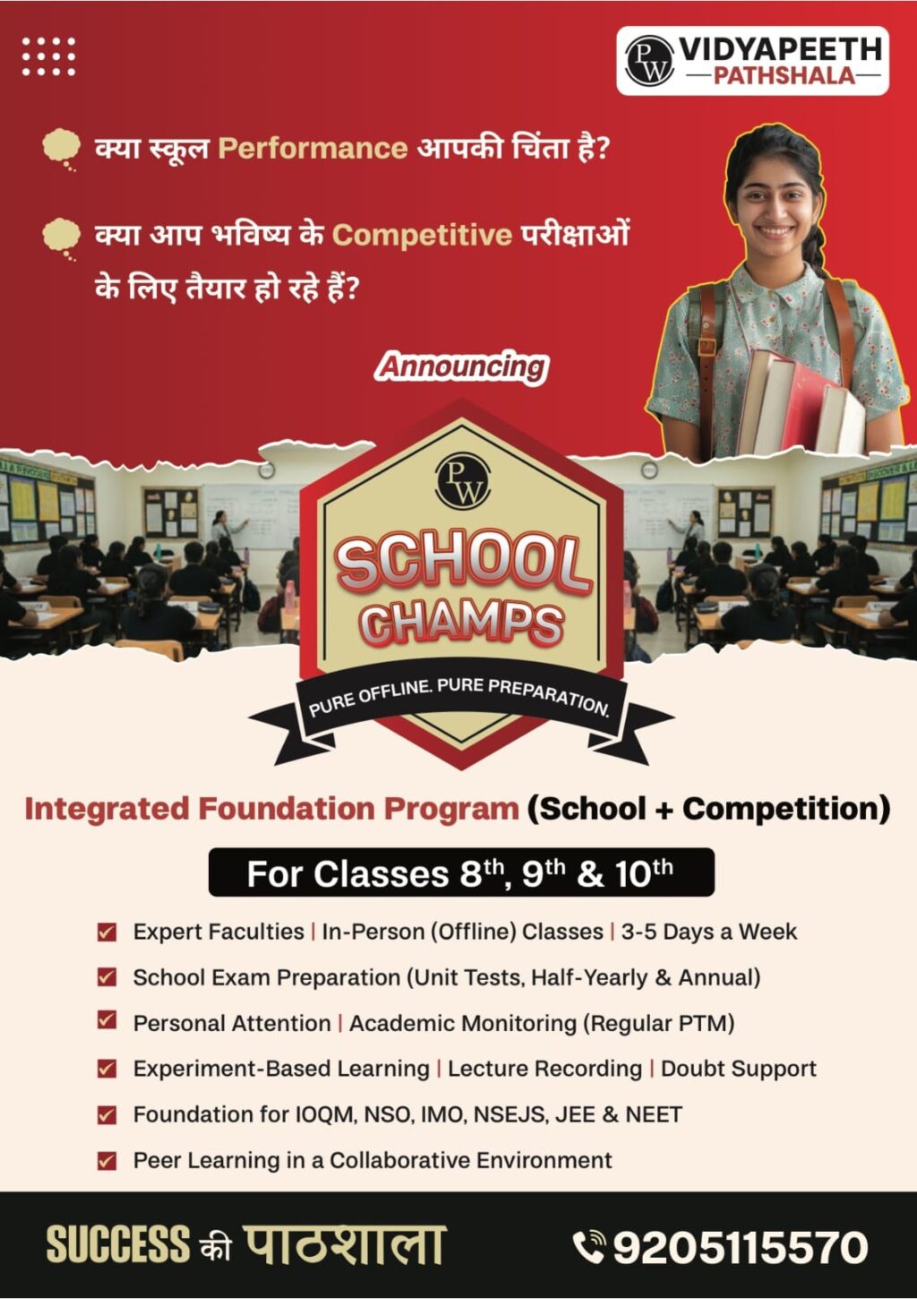 рд╕реНрдХреВрд▓ рдХреА рдкрдврд╝рд╛рдИ рдХреЗ рд╕рд╛рде Olympiad рдФрд░ JEE/NEET Foundation рдХреА рддреИрдпрд╛рд░реА