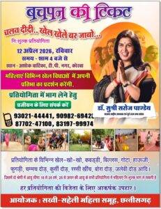 डॉ. सुष्री सरोज पाण्डेय की प्रेरणा से ‘चलव दीदी… खेल खेले बर जाबो…’ थीम पर महिलाओं के लिए निःशुल्क खेल प्रतियोगिता 12 अप्रैल को