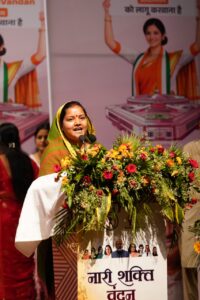 рдорд╣рд┐рд▓рд╛ рдПрд╡рдВ рдмрд╛рд▓ рд╡рд┐рдХрд╛рд╕ рдордВрддреНрд░реА рд╢реНрд░реАрдорддреА рд▓рдХреНрд╖реНрдореА рд░рд╛рдЬрд╡рд╛реЬреЗ рдиреЗ рдЕрдкрдиреЗ рдЙрджреНрдмреЛрдзрди рдореЗрдВ рдХрд╣рд╛ рдХрд┐ рдирд╛рд░реА рд╢рдХреНрддрд┐ рд╡рдВрджрди рдЕрдзрд┐рдирд┐рдпрдо рдХреЗрд╡рд▓ рдПрдХ рдХрд╛рдиреВрди рдирд╣реАрдВ, рдмрд▓реНрдХрд┐ рдпрд╣ рджреЗрд╢ рдХреА рдХрд░реЛрдбрд╝реЛрдВ рдорд╣рд┐рд▓рд╛рдУрдВ рдХреЗ рд╕рдВрдШрд░реНрд╖, рд╕рдорд░реНрдкрдг рдФрд░ рдЖрддреНрдордмрд▓ рдХрд╛ рд╕рдореНрдорд╛рди рд╣реИред рдЙрдиреНрд╣реЛрдВрдиреЗ рдХрд╣рд╛ рдХрд┐ рдпрд╣ рдЕрдзрд┐рдирд┐рдпрдо рдорд╣рд┐рд▓рд╛рдУрдВ рдХреЛ рдиреАрддрд┐ рдирд┐рд░реНрдорд╛рдг рдФрд░ рд░рд╛рдЬрдиреАрддрд┐рдХ рдиреЗрддреГрддреНрд╡ рдореЗрдВ рднрд╛рдЧреАрджрд╛рд░реА рд╕реБрдирд┐рд╢реНрдЪрд┐рдд рдХрд░реЗрдЧрд╛ рдФрд░ рджреЗрд╢ рдХреА рд▓реЛрдХрддрд╛рдВрддреНрд░рд┐рдХ рд╡реНрдпрд╡рд╕реНрдерд╛ рдХреЛ рдирдИ рджрд┐рд╢рд╛ рджреЗрдЧрд╛ред рдЙрдиреНрд╣реЛрдВрдиреЗ рдЗрд╕реЗ рдРрддрд┐рд╣рд╛рд╕рд┐рдХ рдФрд░ рдкрд░рд┐рд╡рд░реНрддрдирдХрд╛рд░реА рдХрджрдо рдмрддрд╛рддреЗ рд╣реБрдП рдХрд╣рд╛ рдХрд┐ рдЗрд╕рд╕реЗ рдорд╣рд┐рд▓рд╛рдУрдВ рдХреЛ рд╕рдореНрдорд╛рди, рд╕реБрд░рдХреНрд╖рд╛, рд╕реБрд╡рд┐рдзрд╛ рдФрд░ рд╕рдореГрджреНрдзрд┐ рдХрд╛ рдирдпрд╛ рдЬреАрд╡рди рдорд┐рд▓реЗрдЧрд╛ред
