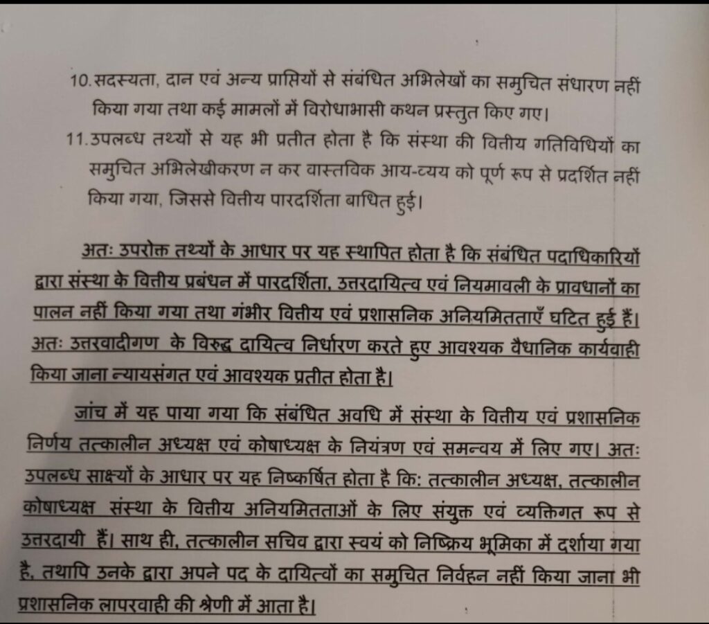 जांच के दौरान संबंधित पदाधिकारियों को कई बार नोटिस जारी कर दस्तावेज प्रस्तुत करने का मौका दिया गया, लेकिन उन्होंने न तो संतोषजनक जवाब दिया और न ही सहयोग किया। यह रवैया खुद कई सवाल खड़े करता है।