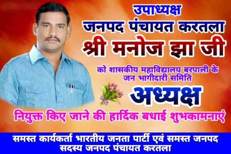 **शासकीय महाविद्यालय बरपाली में बड़ा निर्णय— प्रभारी मंत्री अरुण साव की अनुशंसा पर मनोज झा को मिला अध्यक्ष पद...