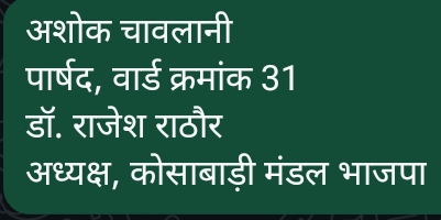 अशोक चावलानी पार्षद, वार्ड क्रमांक 31 डॉ. राजेश राठौर अध्यक्ष, कोसाबाड़ी मंडल भाजपा त्रिनेत्र टाइम्स कोरबा ****/ कोरबा। वार्ड क्रमांक...