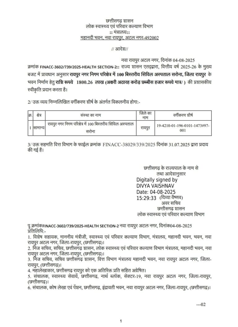 अठारह करोड़ छब्बीस हजार रुपये की लागत से होगा निर्माण विधायक राजेश मूणत ने मुख्यमंत्री और स्वास्थ्य मंत्री के प्रति...